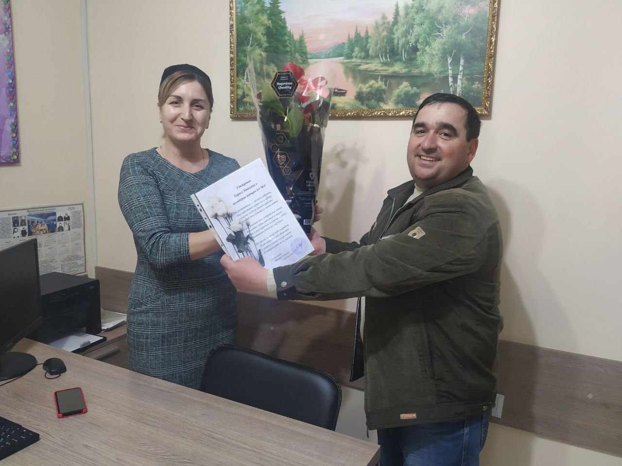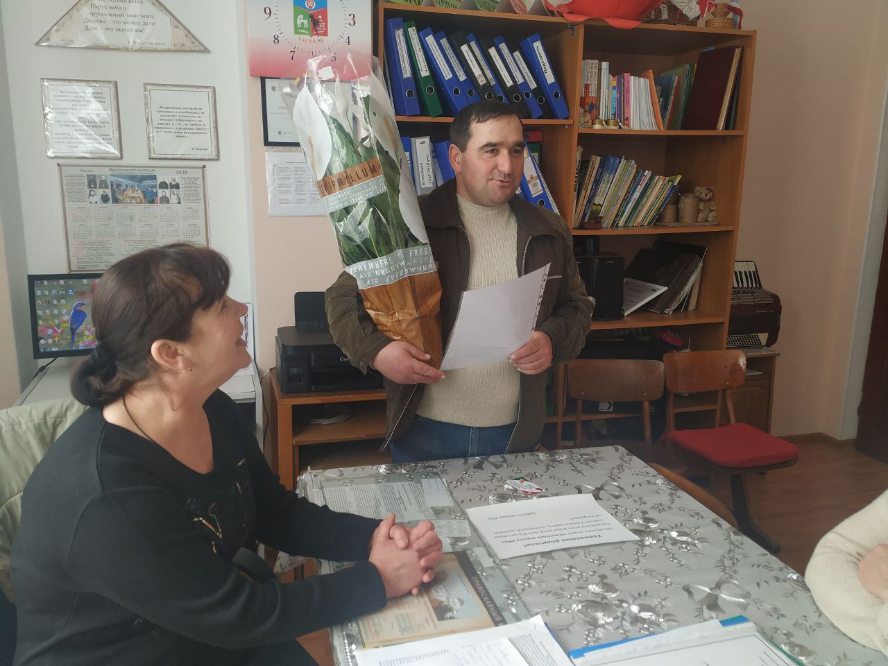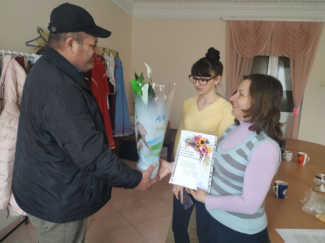 Поздравительные открытки с цветами получили женские коллективы обоих лицеев, садиков, колхоза, фабрики Асена — текстиль, Дома культуры, Дома быта.