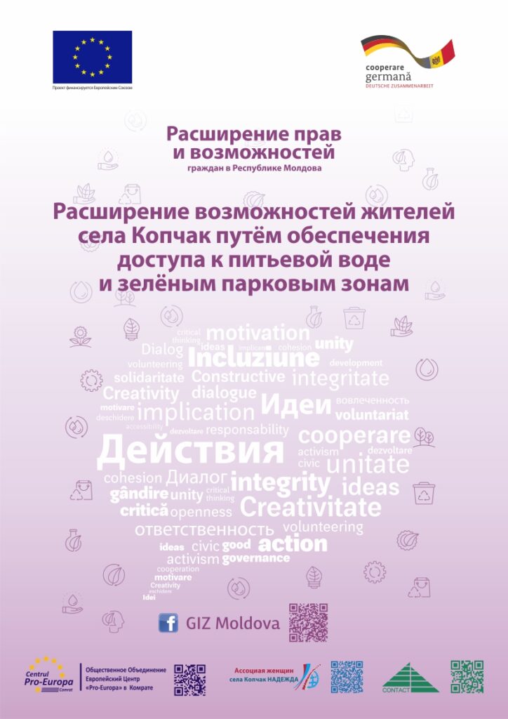 Общественная Ассоциация женщин села Копчак «Надежда» является бенефициаром местных грантов Европейского Союза и реализует проект «Расширение возможностей жителей с.Копчак путём обеспечения доступа к питьевой воде и зеленым парковым зонам» в с.Копчак.