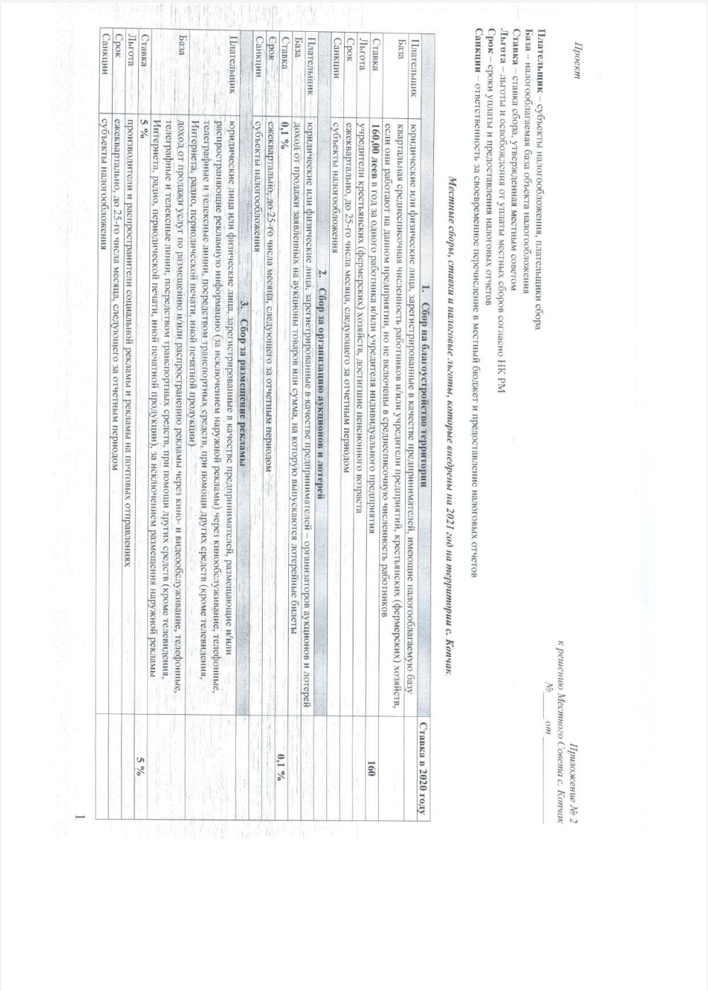 Об утверждении местных сборов и налогов на 2021 год.