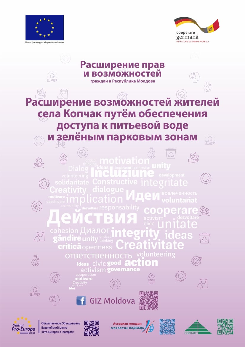 АО Ассоциация женщин села Копчак «НАДЕЖДА» является бенефициаром Программы местных грантов Европейского Союза и реализует с 1 сентября 2020 года по 30 апреля 2021 года проект «Расширение возможностей жителей села Копчак путем обеспечения доступа к питьевой воде и зеленым парковым зонам» в селе Копчак. Программа местных грантов запускается на основе Единого механизма поддержки ЕС, предоставленного Республике Молдова (2017-2020 гг.) в рамках Европейского инструмента соседства, и внедряется в рамках проекта «Расширение прав и возможностей граждан в Республике Молдова» (2019-2021 гг.), который финансируется Европейским Союзом и реализуется Германским Агентством по Международному Сотрудничеству (GIZ). Региональными партнерами проекта по повышению вовлеченности граждан в регионе АТО Гагаузия является ОО Европейский Центр «Pro-Europa» в Комрате и Национальный Центр Поддержки и Информирования НПО в Молдове CONTACT.