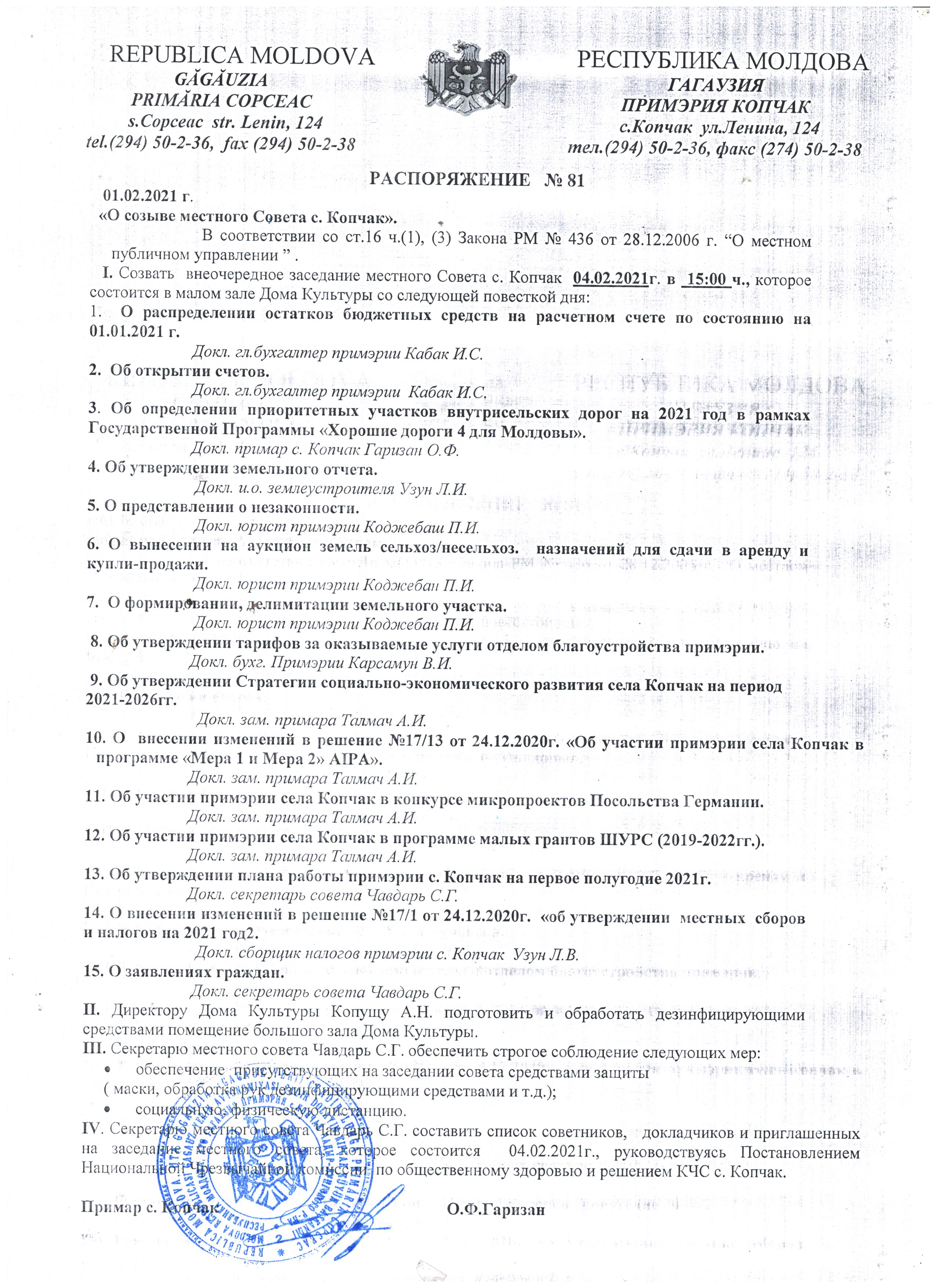 Созывается заседание местного Совета 04.02.2021 в 15:00 в малом зале Дома Культуры.