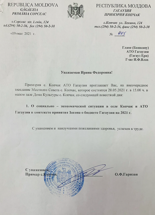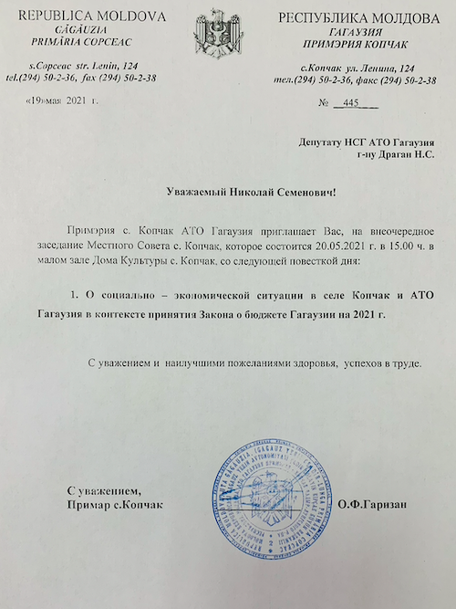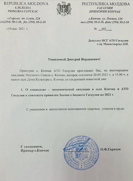 Напомним, что Примар с. Копчак Олег Гаризан издал распоряжение о созыве внеочередного заседания Местного совета после обращения местных избранников.