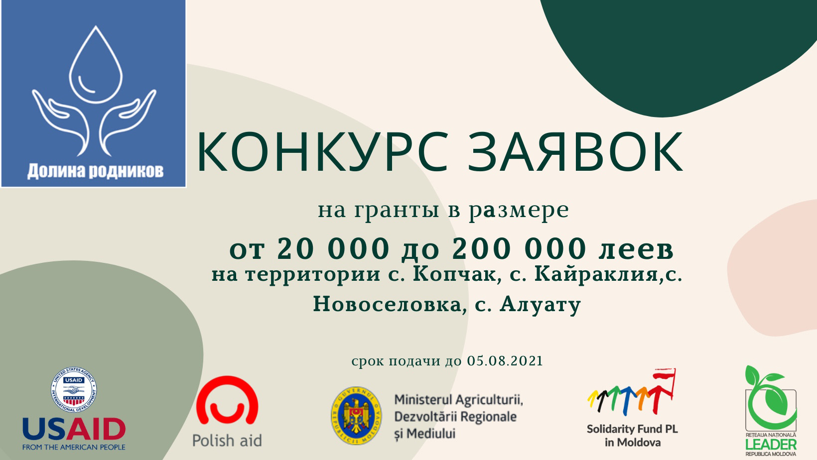 Если у Вас есть инициатива/идея, которая может способствовать восстановлению и развитию местной инфраструктуры для улучшения условий жизни, развитию местного предпринимательства и созданию новых рабочих мест на территории МИГа, приглашаем Вас подать заявку на финансирование. Предлагаемые МИГ-ом безвозвратные гранты варьируются от 20 000 лей до 200 000 лей.