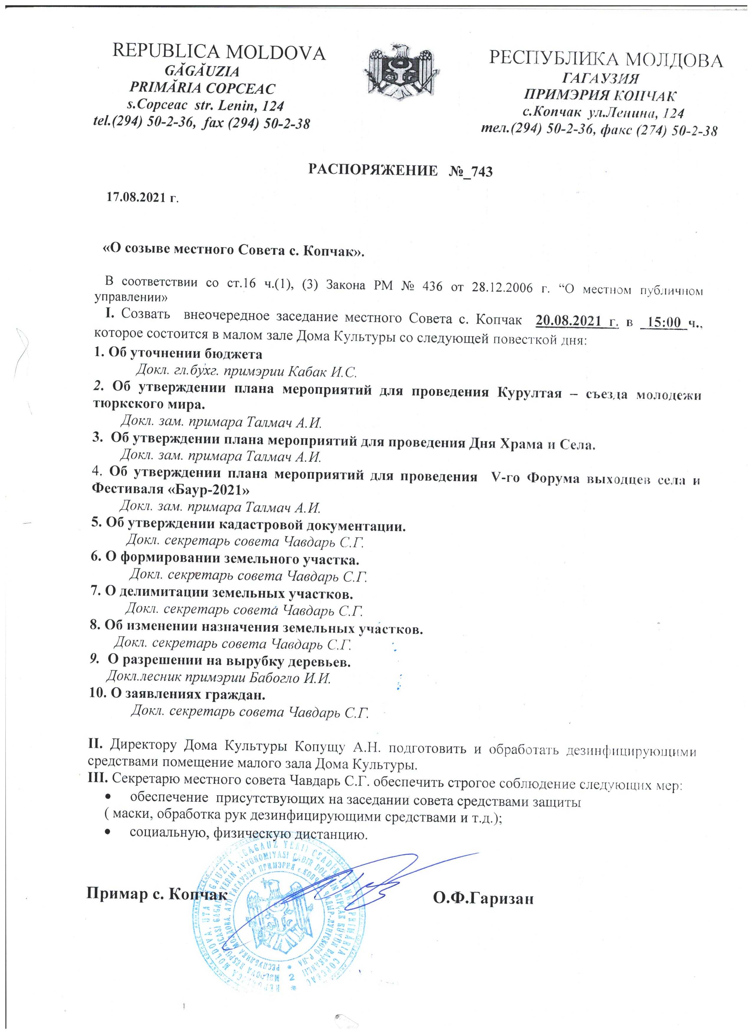 Внеочередное заседание местного совета состоится 20 августа 2021г.