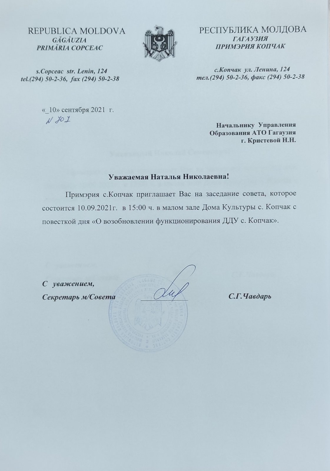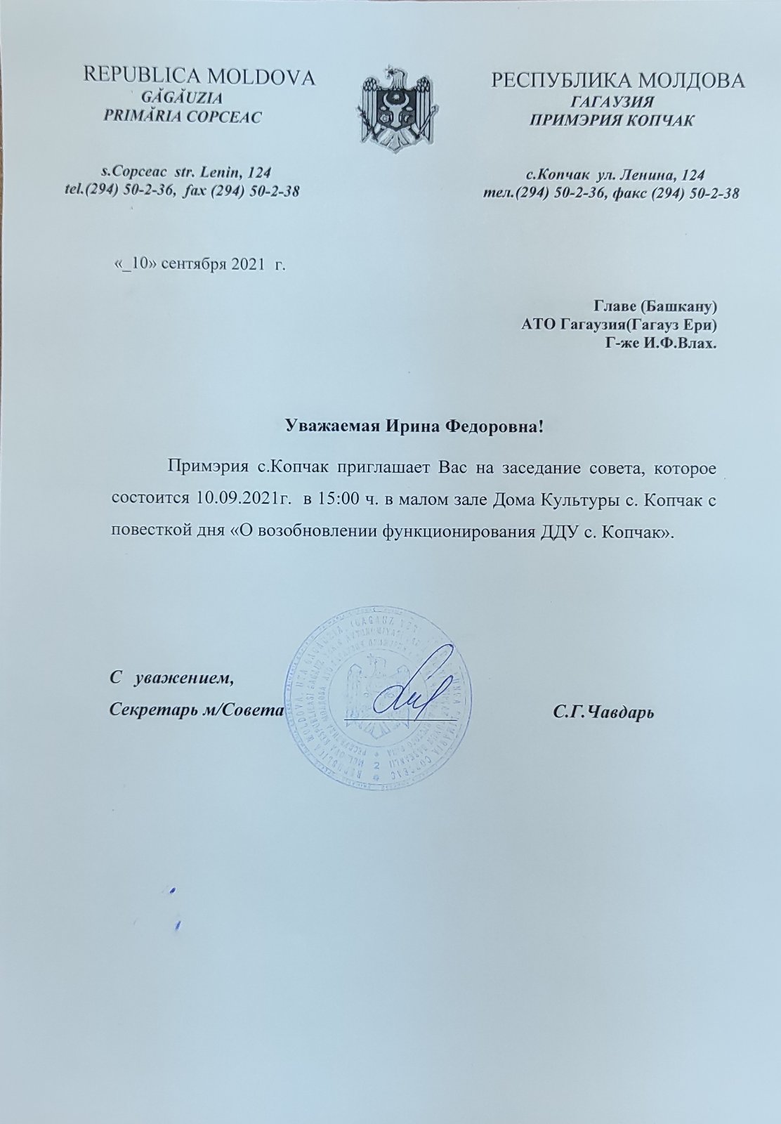 Башкан Гагаузии, начальники управлений Исполкома, депутаты НСГ приглашены на внеочередное заседание Местного совета состоится 10 сентября в 15:00.