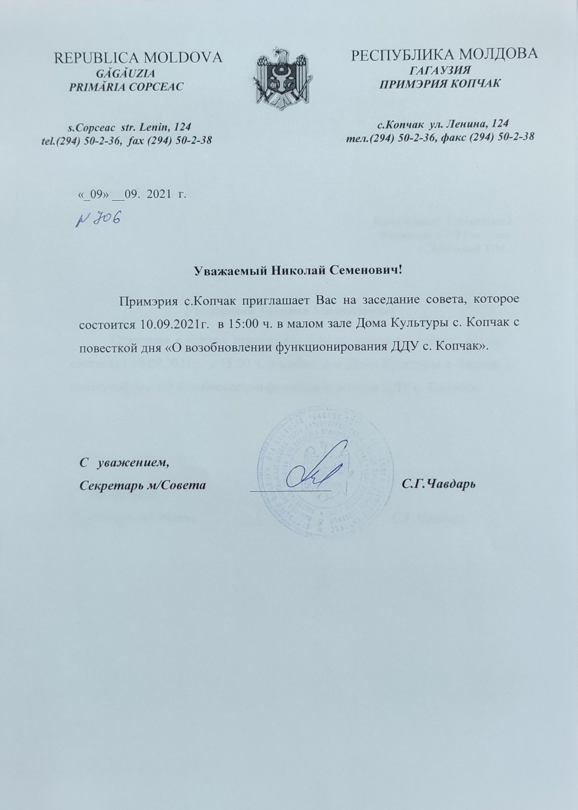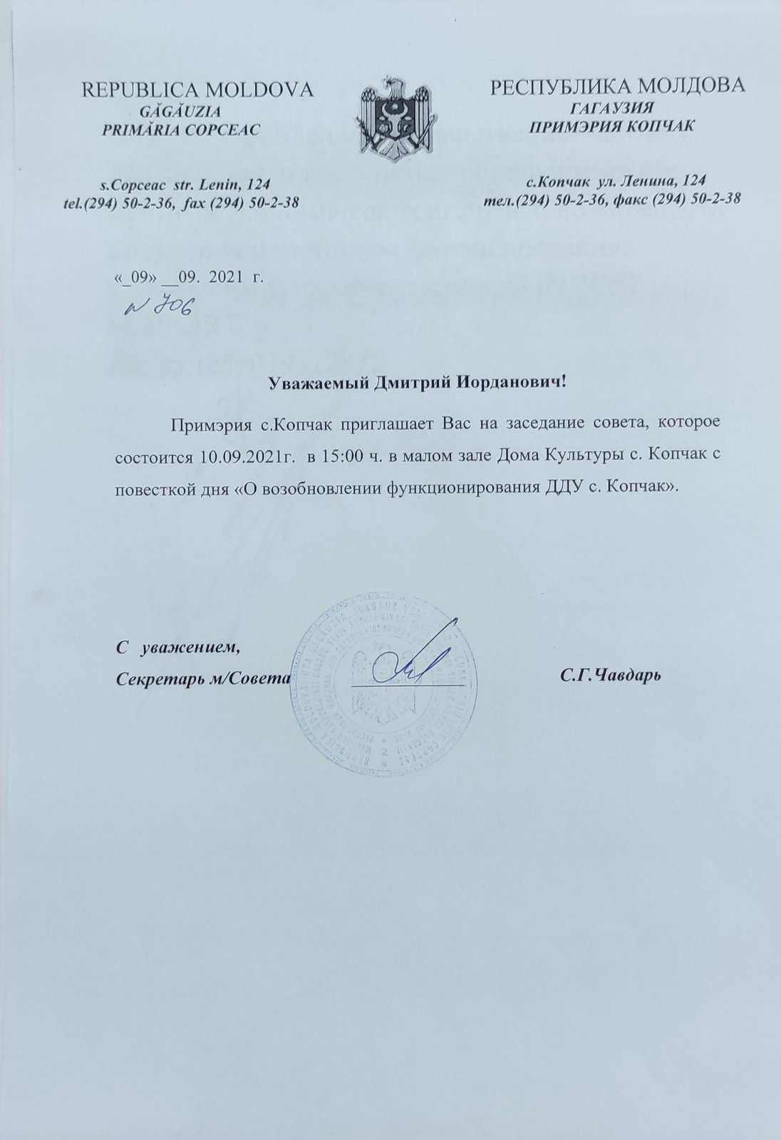 Распоряжением Примара с. Копчак созывается внеочередное заседание Местного совета на 10 сентября в 15:00. Место заседания — Малый зал Дома культуры с. Копчак.