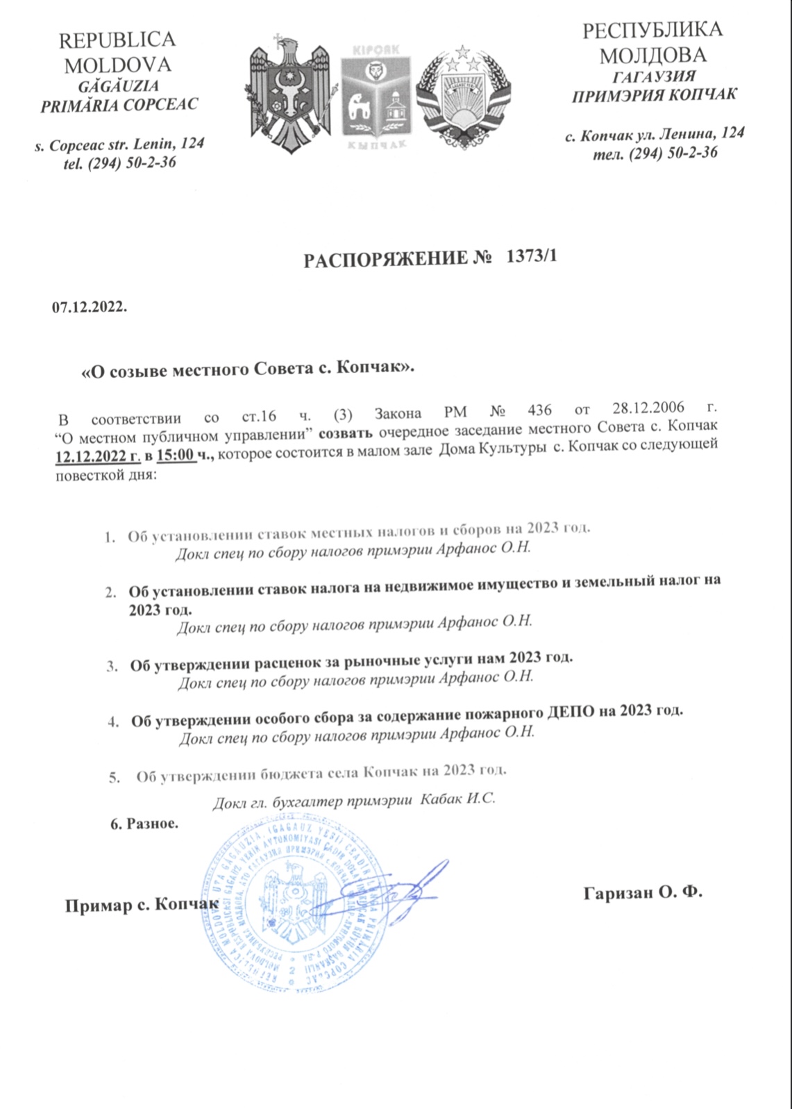 12.12.2022г состоится очередное заседание совета, которое пройдёт в малом зале Дома Культуры в 15:00