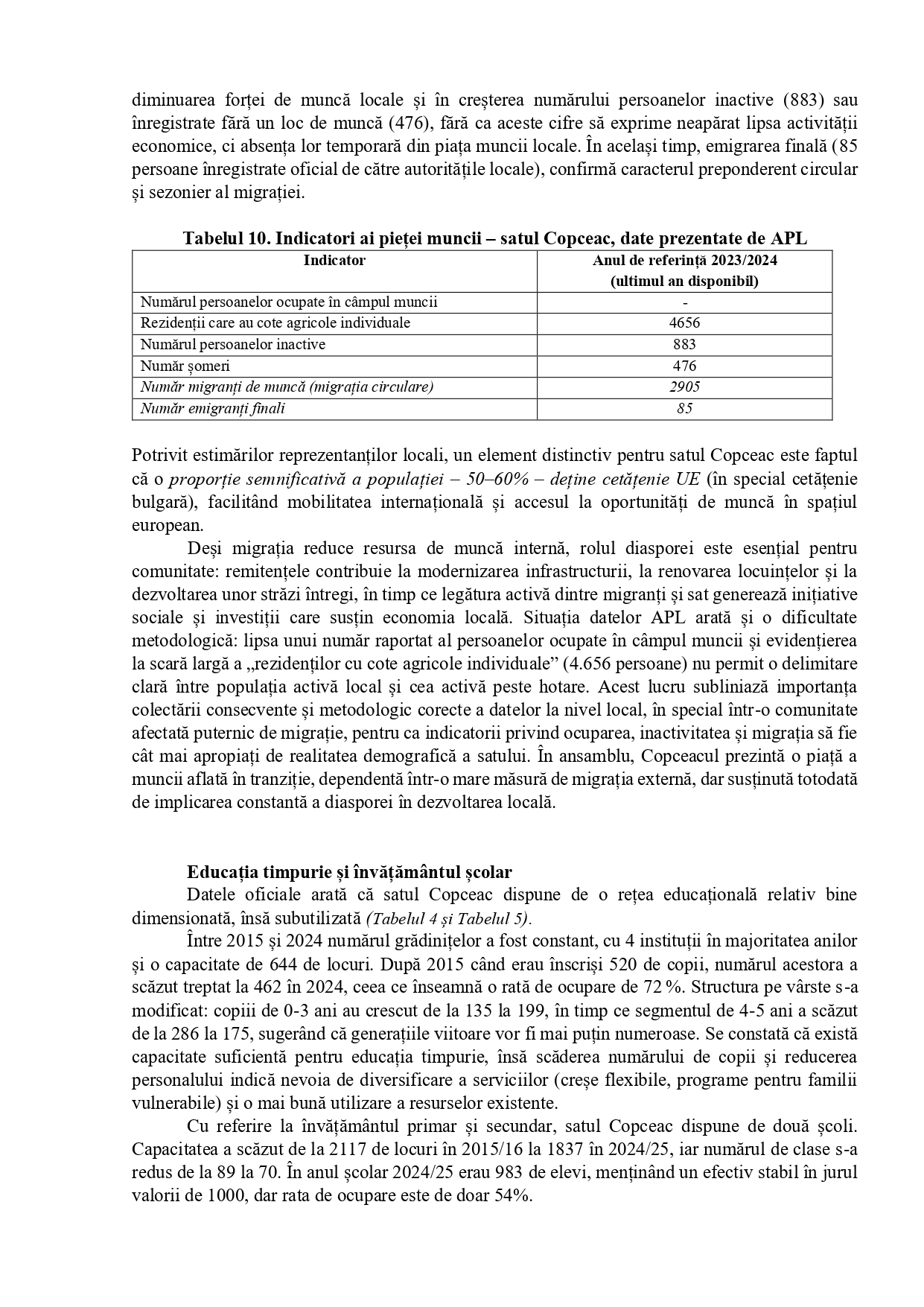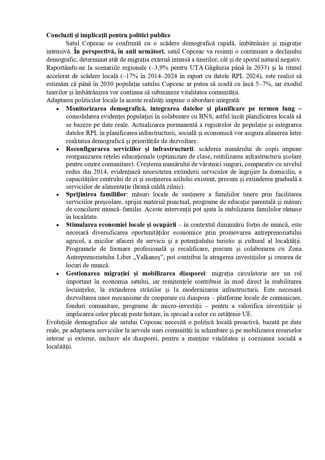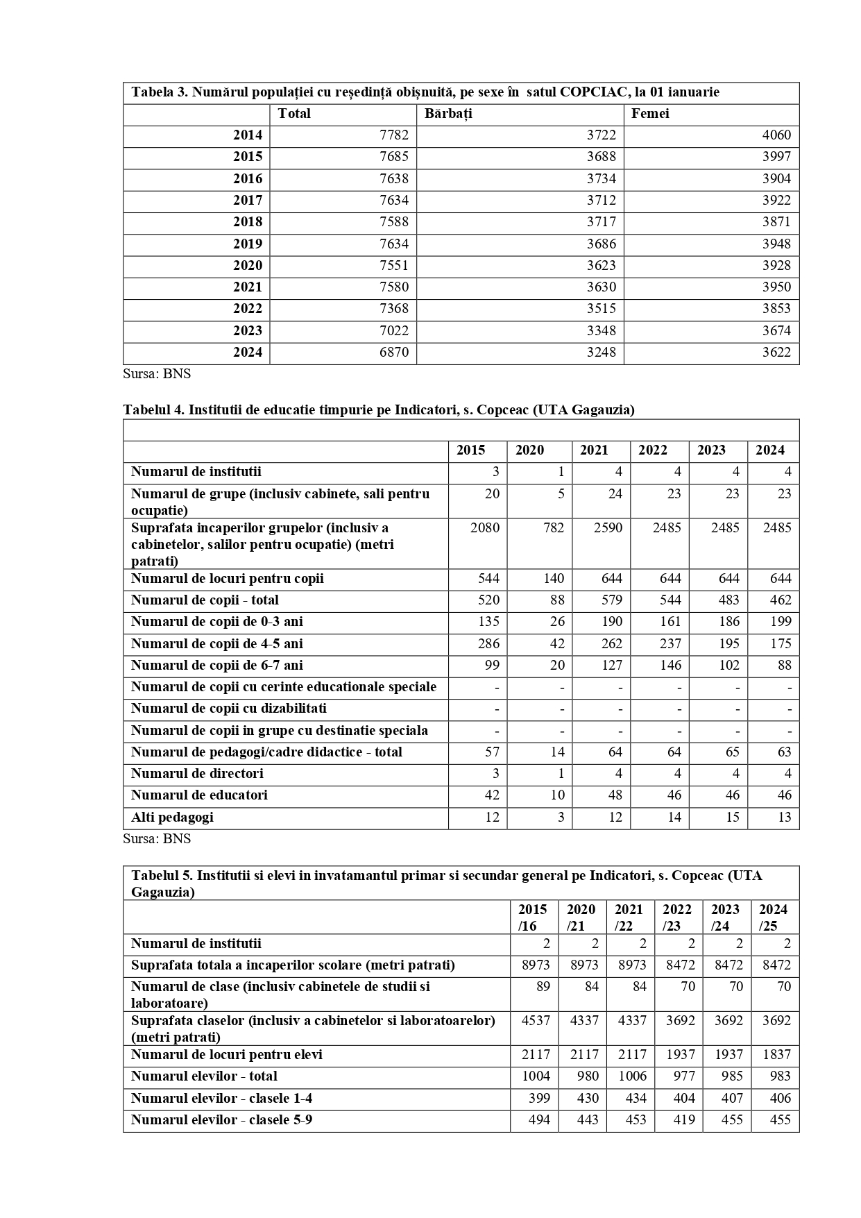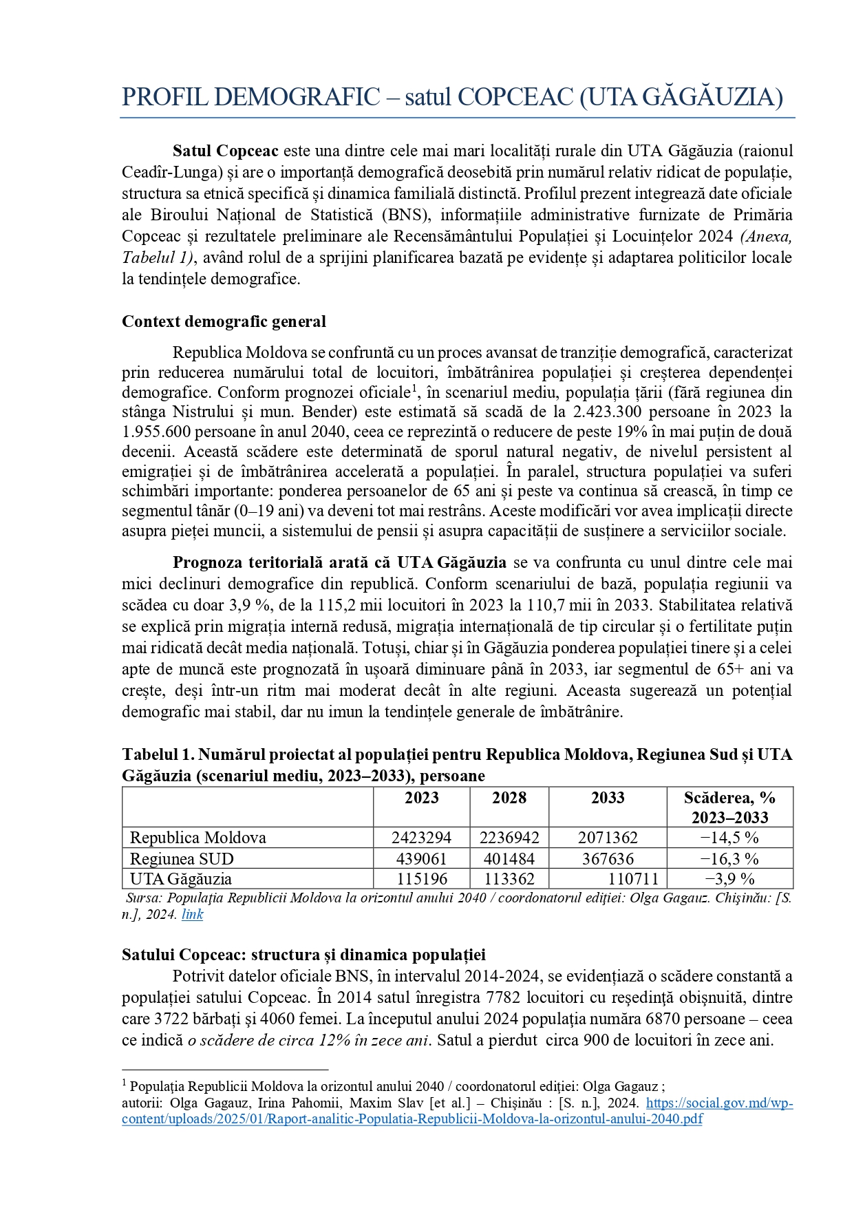 PROFIL DEMOGRAFIC – satul COPCEAC (UTA GĂGĂUZIA)